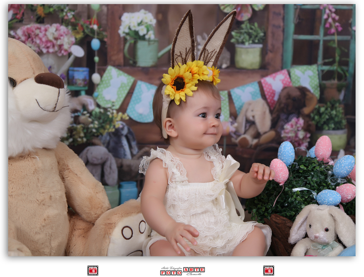 Ela é filha da Mamãe Daniele e do Papai Viriato e hoje veio fazer seu ensaio fofo de Páscoa aqui no Ateliê!!