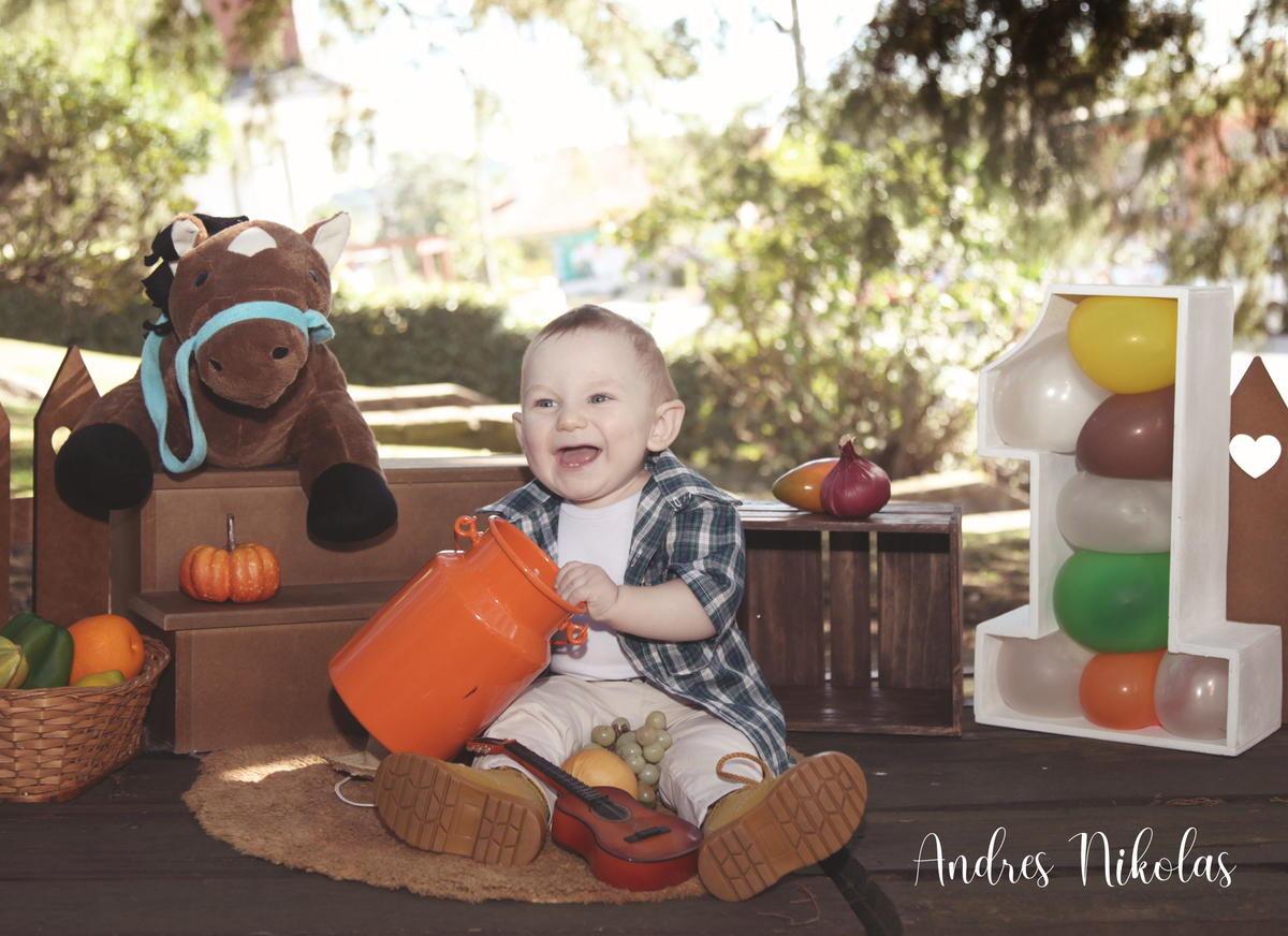 Esse é o Andres Nikolas, no seu ensaio de Um Aninho! uma fazendinha bem doce!!!