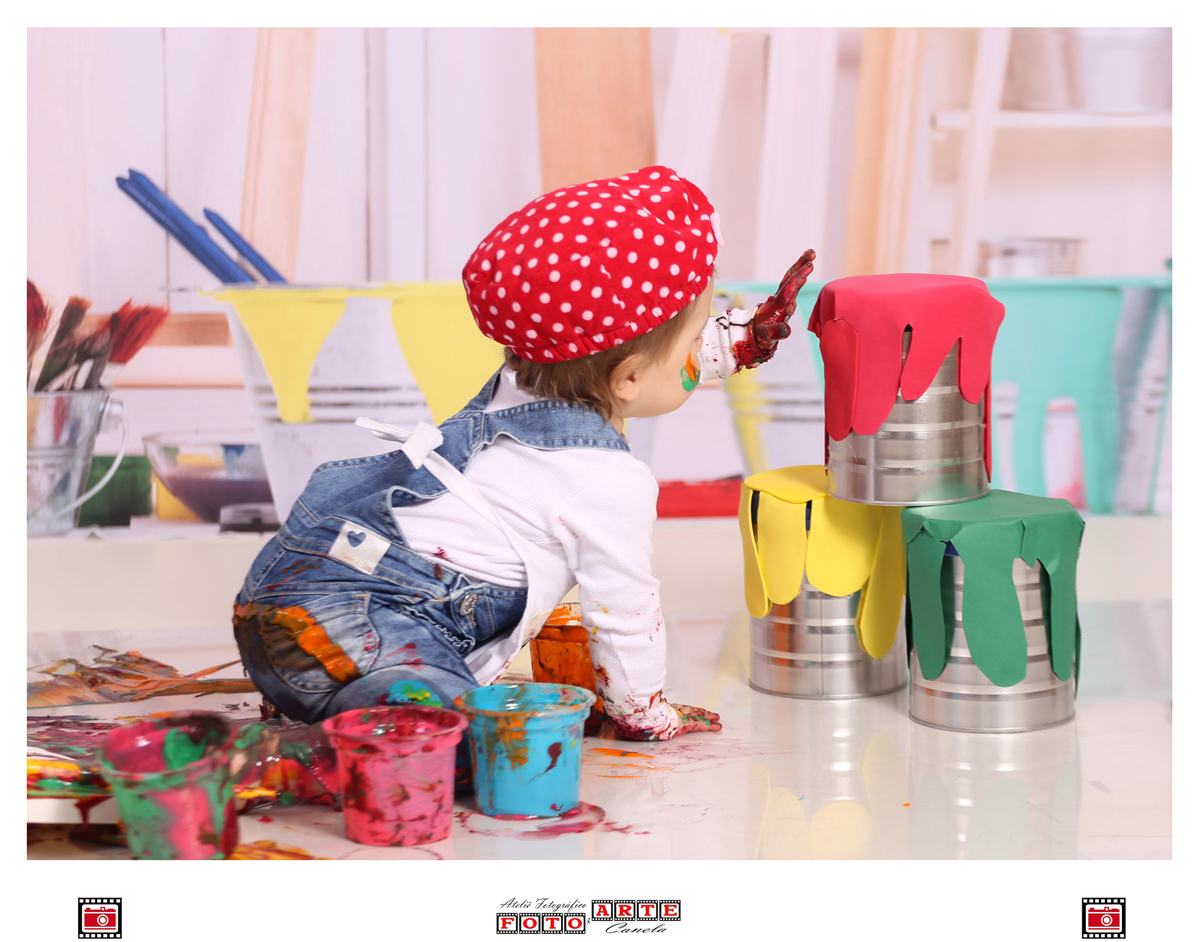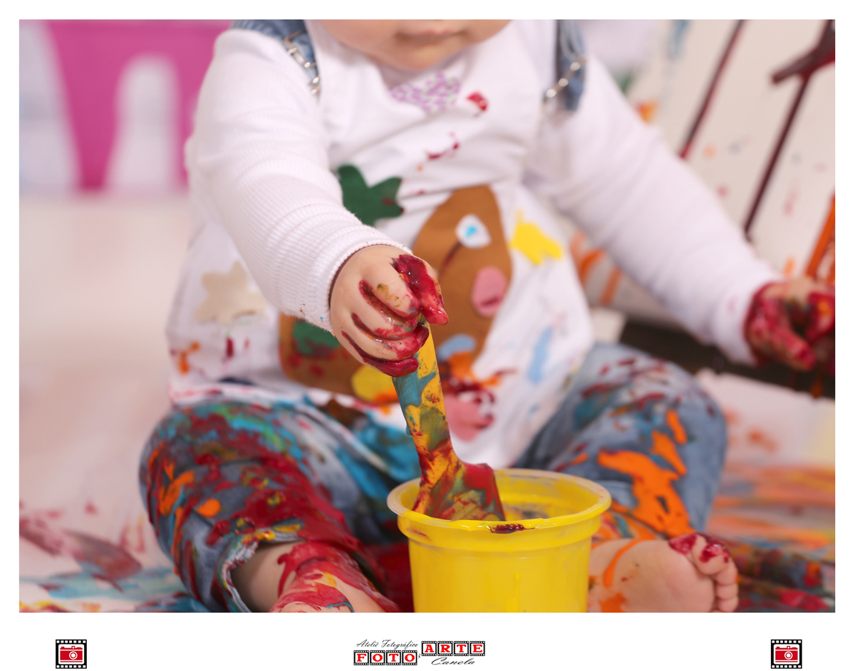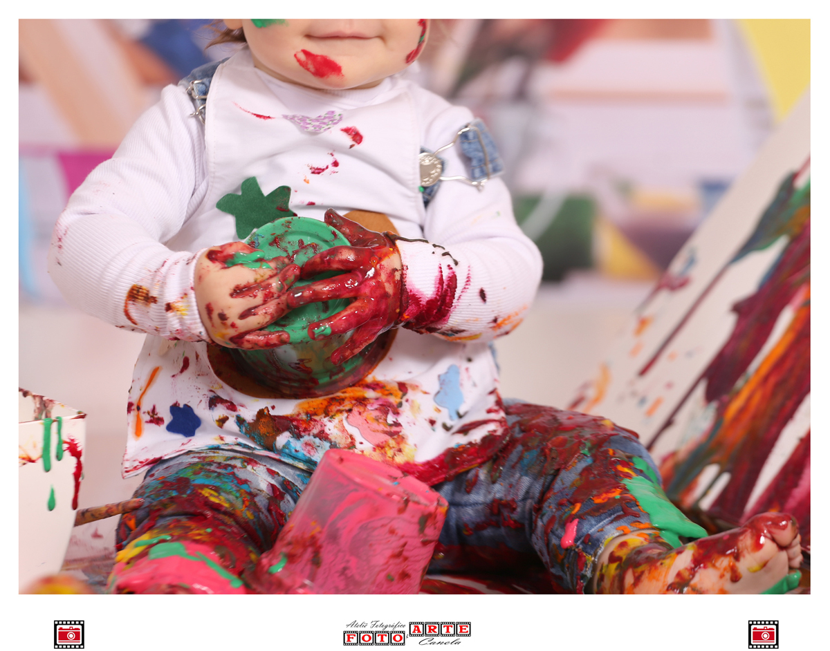 E a Aurora pintou de todas as cores, pintou o sete, o estúdio, pintou a nossa manhã de alegria e de muita fofura, ela curtiu muito o seu ensaio com as tintas coloridas!